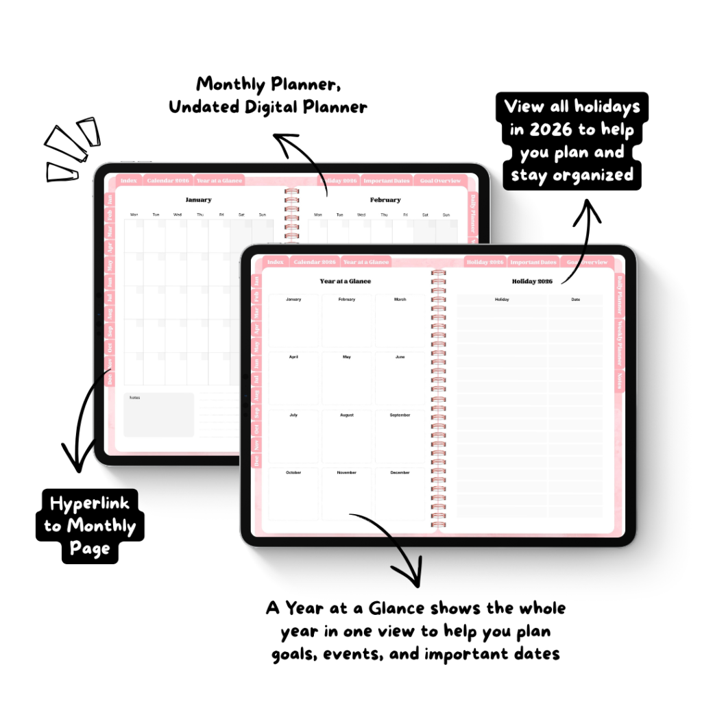 • ✨ Minimalist 2026 Digital Planner that is simple and easy to use